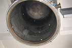 反應釜吊裝至清洗臺上→定位→連接→啟動凈化器→啟動旋轉(zhuǎn)→上下移動機構(gòu)→高壓氣體沿壁噴吹→旋轉(zhuǎn)刷至上而下接觸移動清掃→凈化氣體置換→反應釜吊起→檢查。